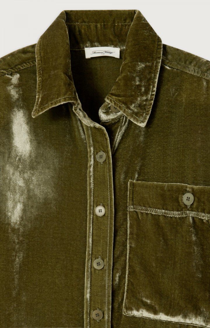 Med alm krave, gennemknappet og med påsyet brystlomme.
