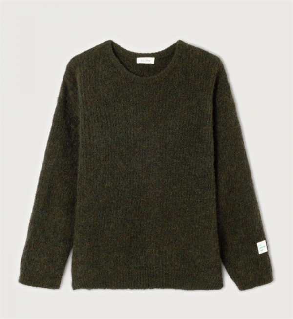 Opdag den ultimative komfort med American Vintage - East Strik Spruce Melange. Denne bløde, boxy strik med rund hals og diskret badge på ærmet er perfekt til enhver lejlighed. Skab et afslappet, men stilfuldt look med dette must-have i din garderobe. Ideel til den modebevidste kvinde.