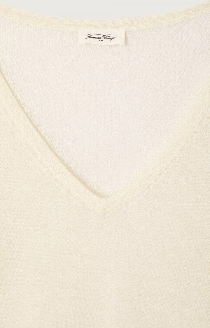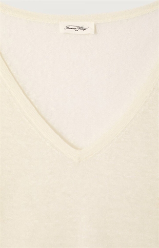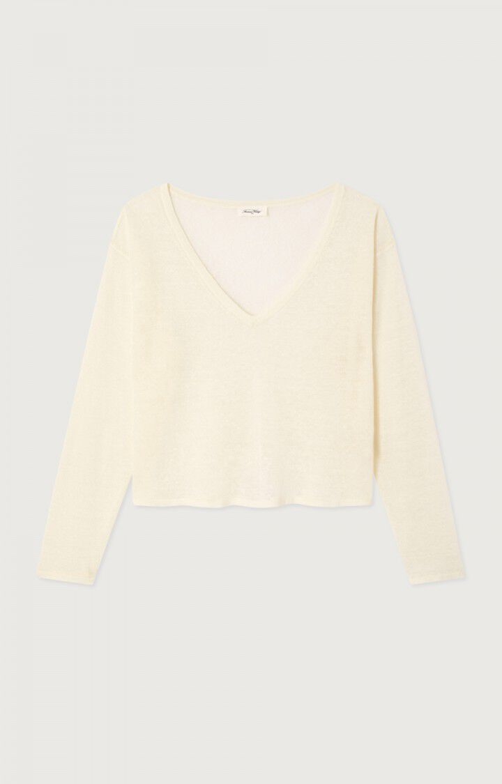 Epaky striktrøje til kvinder har en løs pasform, lange ærmer og en feminin V-hals. Den er lavet i et let og fint sommerstrik med let gennemsigtighed, som giver et moderne og sensuelt udtryk. Perfekt over en bralette til en luftig silhuet på solrige dage.