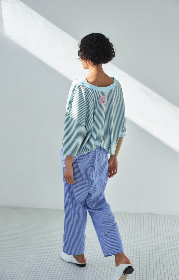 Designet fremhæves af grafiske striber og et logopatch på ryggen, som giver et markant og stilrent look. Style den med denim bermudashorts for et afslappet, urbant outfit med kant.