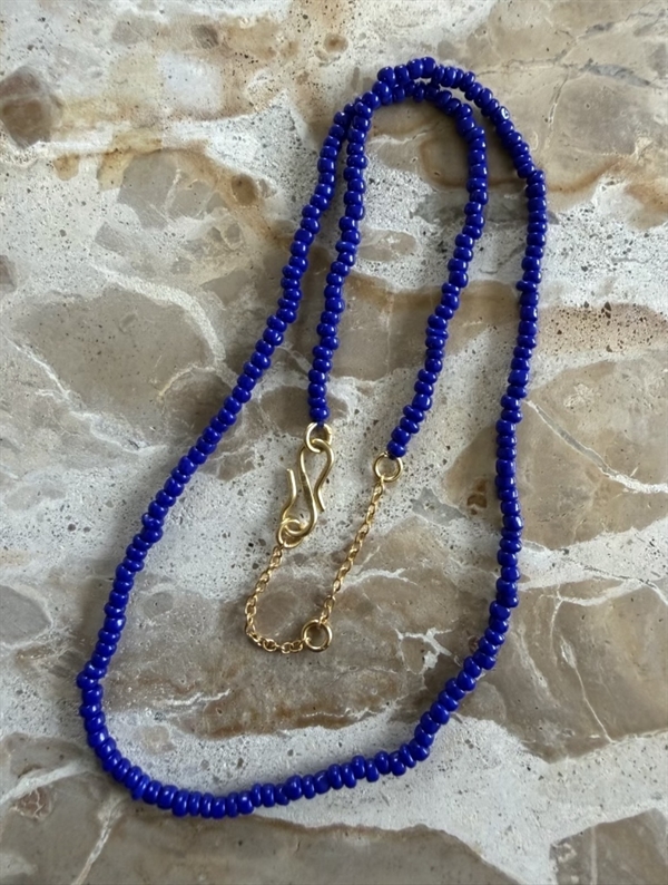 Smuk håndlavet kulørt glasperlekæde, med forgyldt messing S-lås og forlænger stykke på ca 6 cm, brug dem enkeltvis eller som layering med feks Mimi et toi kæderne.
