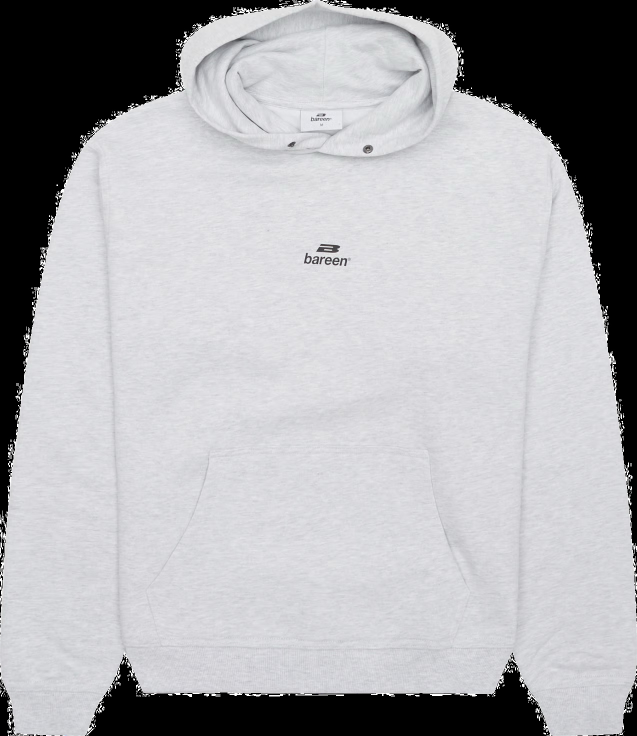 Cloudy grey oversize hættetrøje med nyt bareen logo og lange ærmer, rund hals og hætte i kraftig og blød bomuld med oversize pasform.