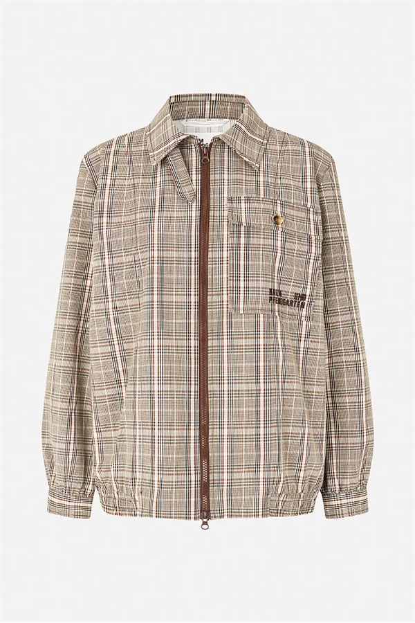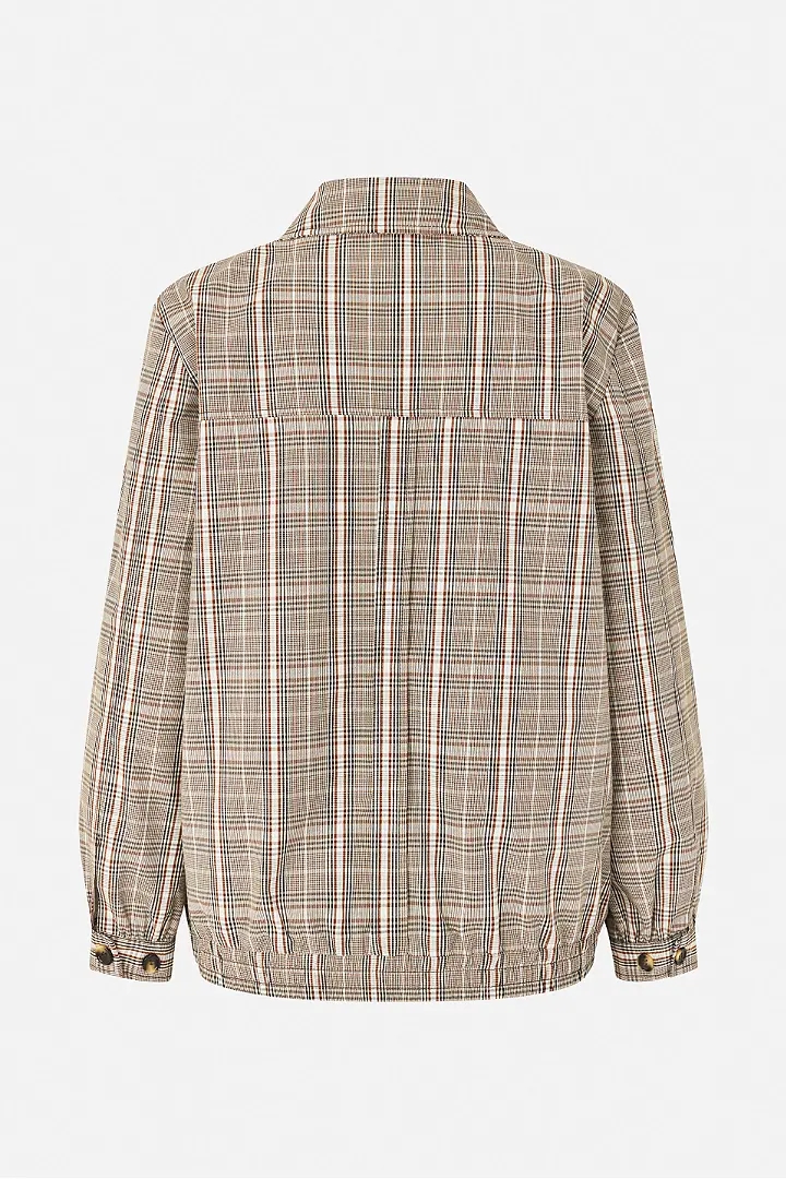 Beline-jakken er en let jakke, lavet i en ternet bomuldsblanding. Den har en løs pasform, krave og elastisk kant forneden.