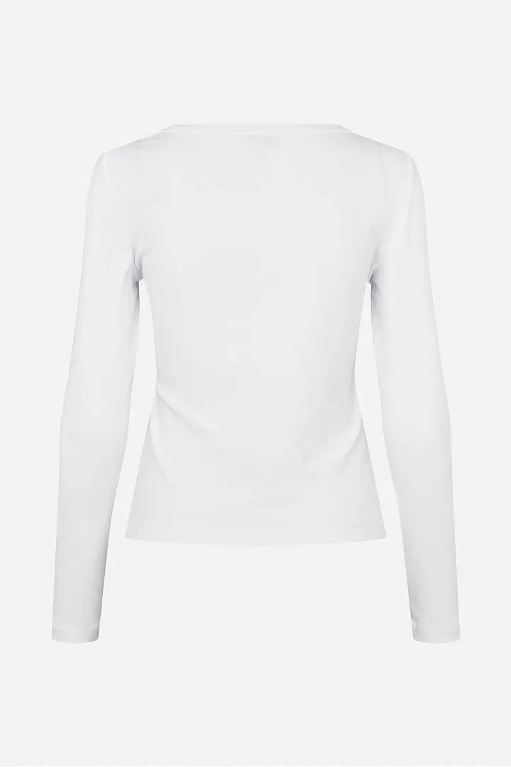 Jonia-toppen er lavet af blød, fint ribbet økologisk bomuldsjersey for en behagelig pasform. Det er en langærmet top med rund halsudskæring og tre knapper foran.