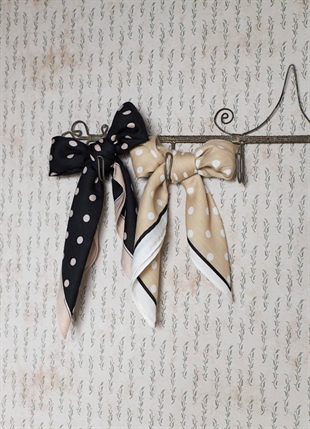 Skønt tørklæde, med prikker og konstrast farvet kant.