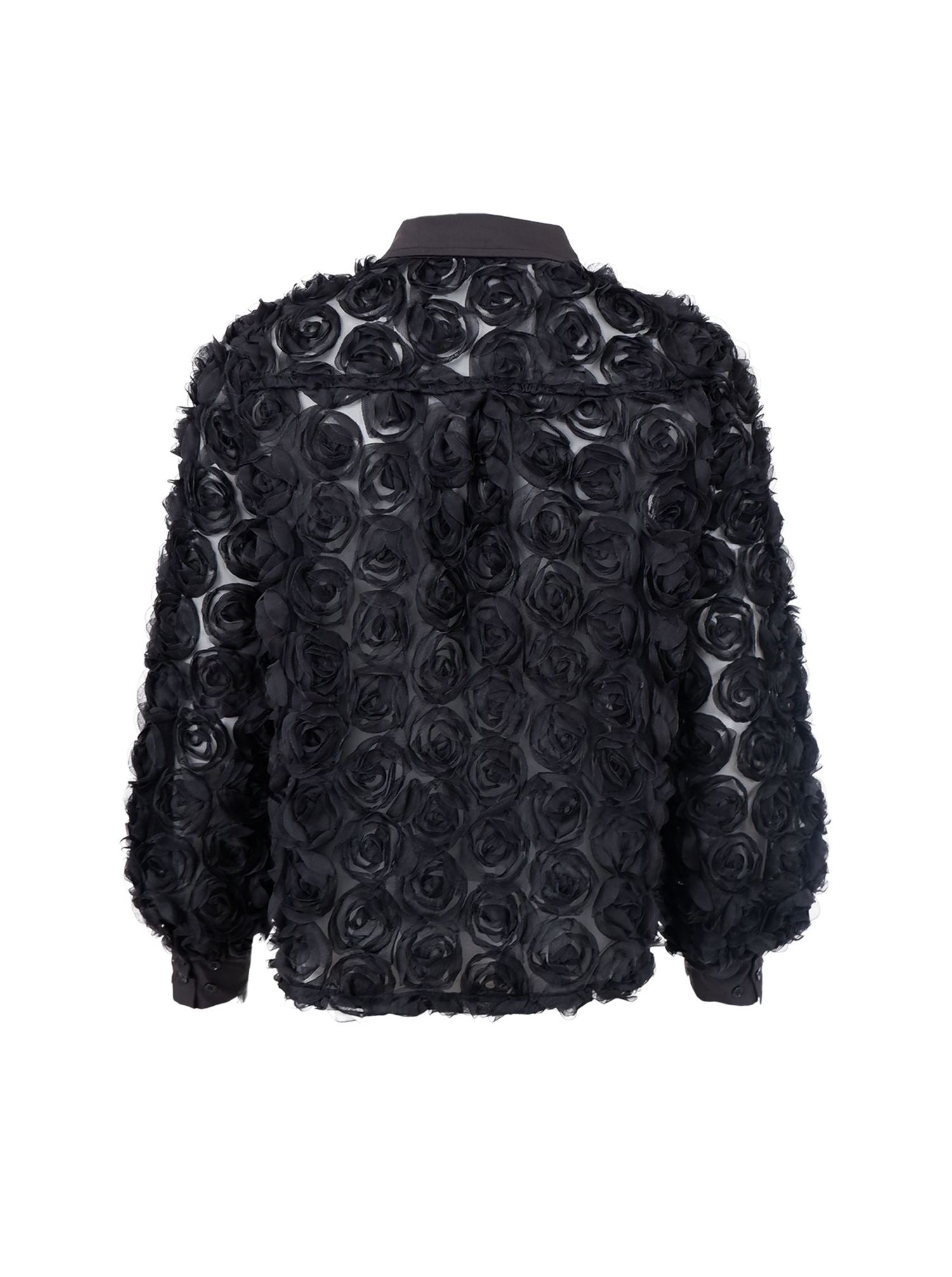 Chiara skjorten er en showstopper med sit unikke 3D-blomsterdesign, der tilføjer struktur og eksklusivitet til ethvert outfit. Den let transparente kvalitet skaber en feminin kontrast til de markante detaljer, mens de voluminøse ærmer og skjulte knaplukning fuldender det dramatiske look.