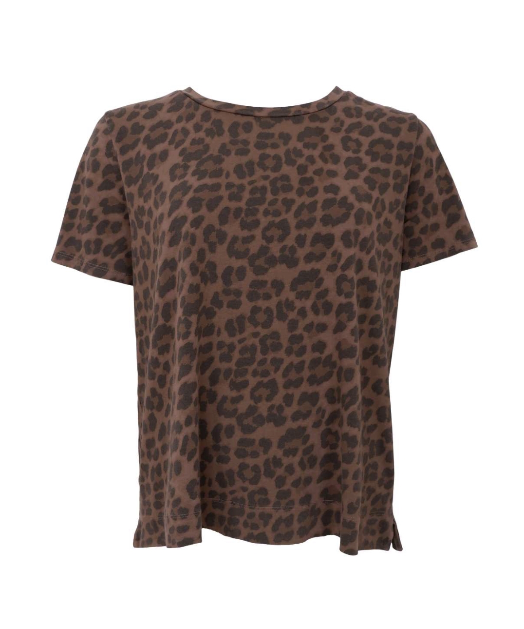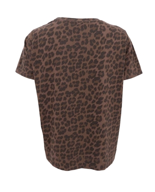 Skøn rundhalset t-shirt med kort ærme og en lille slids ved nederste kant. T-shirten er i et smuk moccafarvet leopard print.