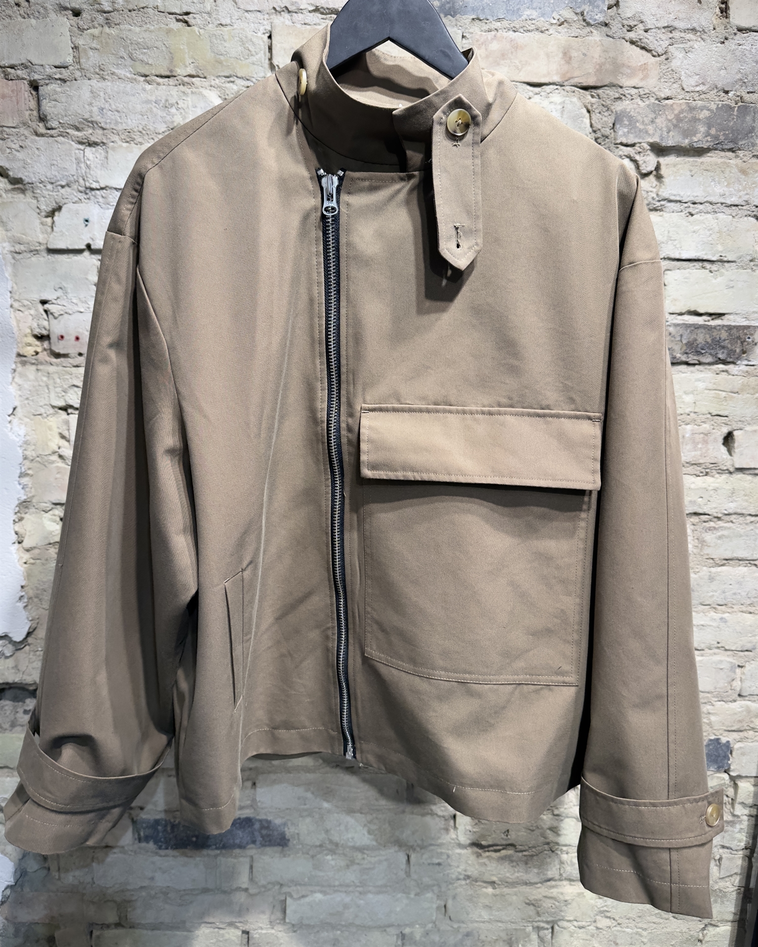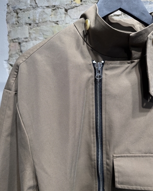 Kort trenchcoat i lækker bomuldsblanding med bred lynlås og et oversize fit.