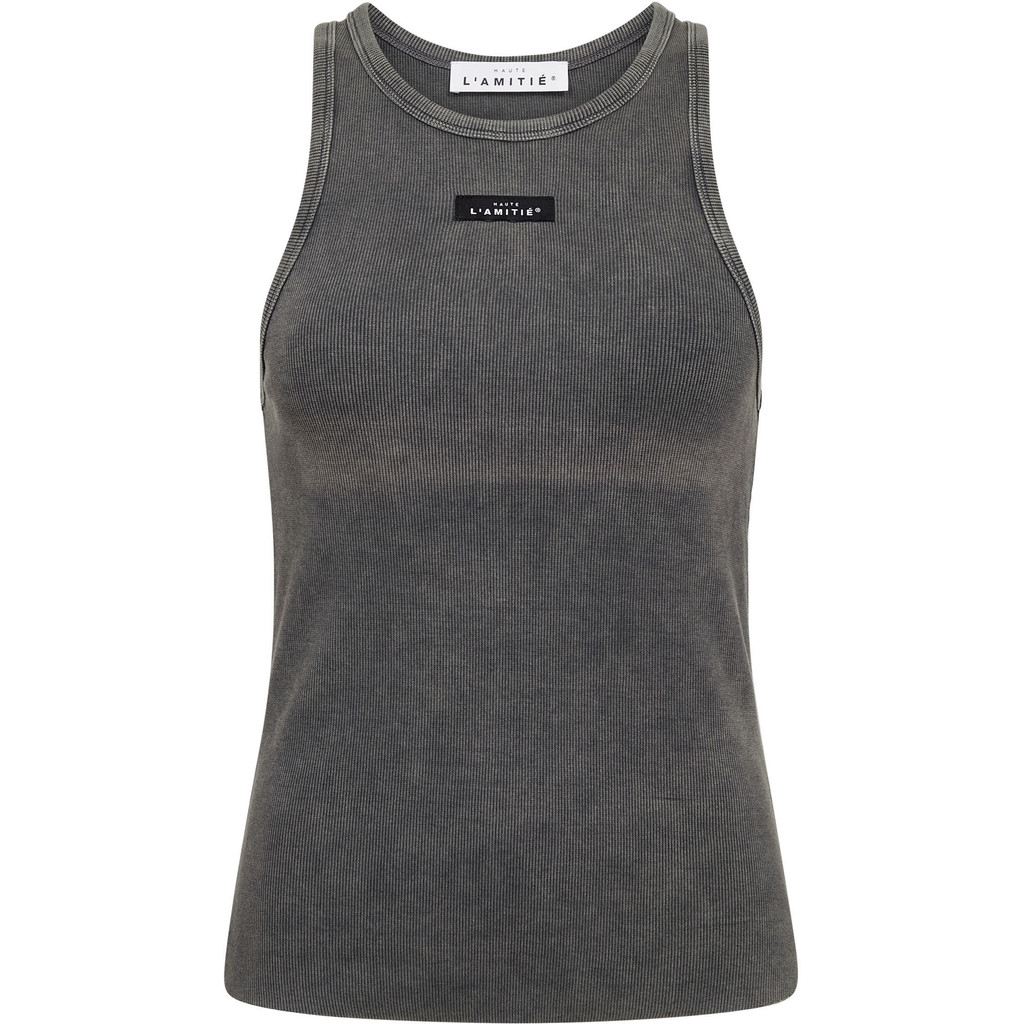 Haute L’Amitié Acid Rib Badge Tank er en moderne og edgy fortolkning af den klassiske tank top. Det ribstrikkede materiale kombineret med en syrevasket finish giver et råt og unikt udtryk, der skiller sig ud i garderoben.