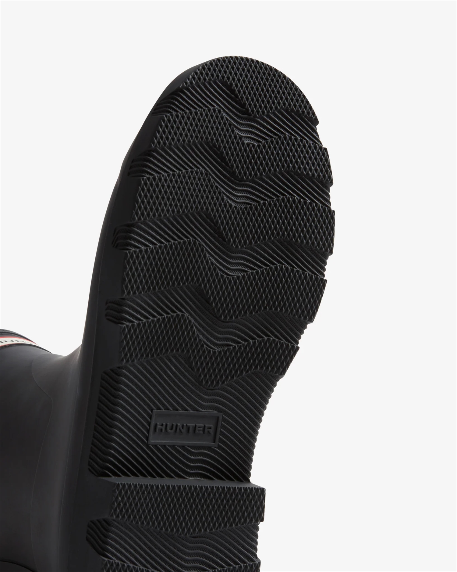 Vi præsenterer det nyeste medlem af Hunter-familien: Unisex Downpour Short Boot. Denne fuldt vandtætte gummistøvle har et stilrent overdesign og en let, støbt ydersål, hvor det unikke mønster er inspireret af naturlige former fra landskaber. Støvlen er håndlavet og afsluttet med en klassisk topkant, der forener traditionelt håndværk med et moderne udtryk. Den er designet med en mere rummelig pasform omkring læggen, hvilket sikrer øget komfort og en nutidig silhuet – perfekt til hverdagsbrug i vådt vejr.