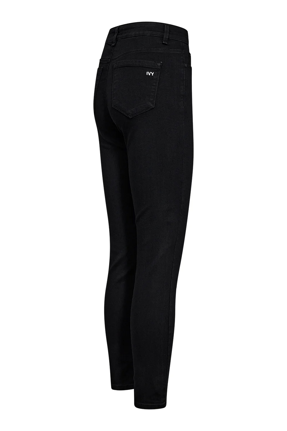 Alexa jeans i cool black kommer i et skinny fit med høj talje. Jeansene er i dybsort blødt denim med høj strækevne. Kombinationen af høj talje og skinny fit skaber en feminin kurve og forlænger underkroppen, hvilket giver illusionen af længere ben.