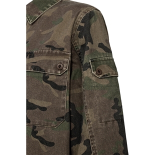 Karmey Festival Jacket er din go-to jakke, når du vil gå all in på et modigt look. Designet i klassisk army-camouflage med en blød, vasket finish har den en afslappet overshirt-silhuet, der er perfekt til lag-på-lag styling.