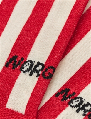 Cool strømper fra Mads Nørgaard - et par lækre lidt kraftigere strømper med striber i kontastfarver logo bagpå.