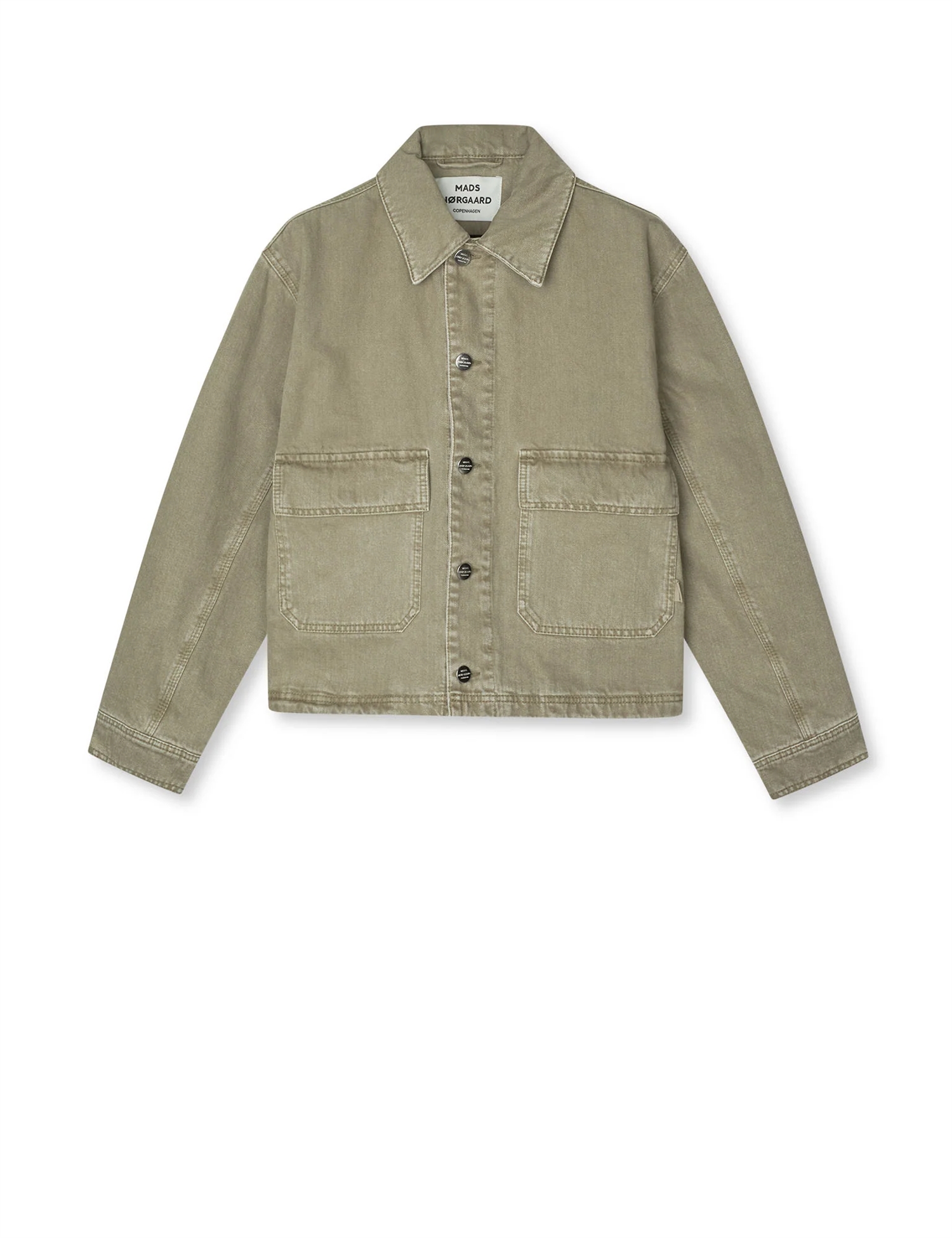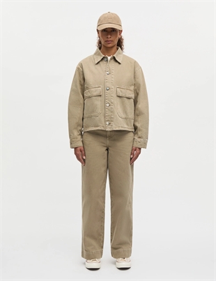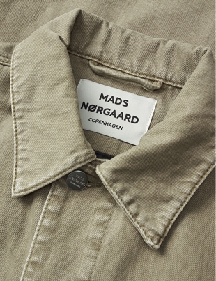 Super cool denimjakke med quiltet for, masser af detaljer, påsatte lommer i en smuk sand/lys oliven nuance.