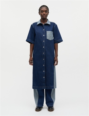 Den sejeste denimkjole fra Mads Nørgaard. Gennemknappet og brystlomme, brug den både åben og lukket.