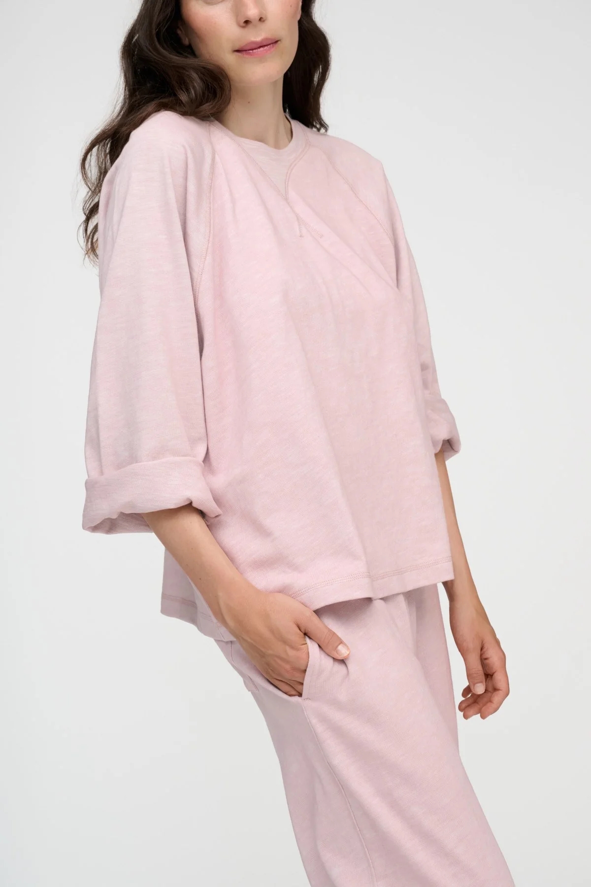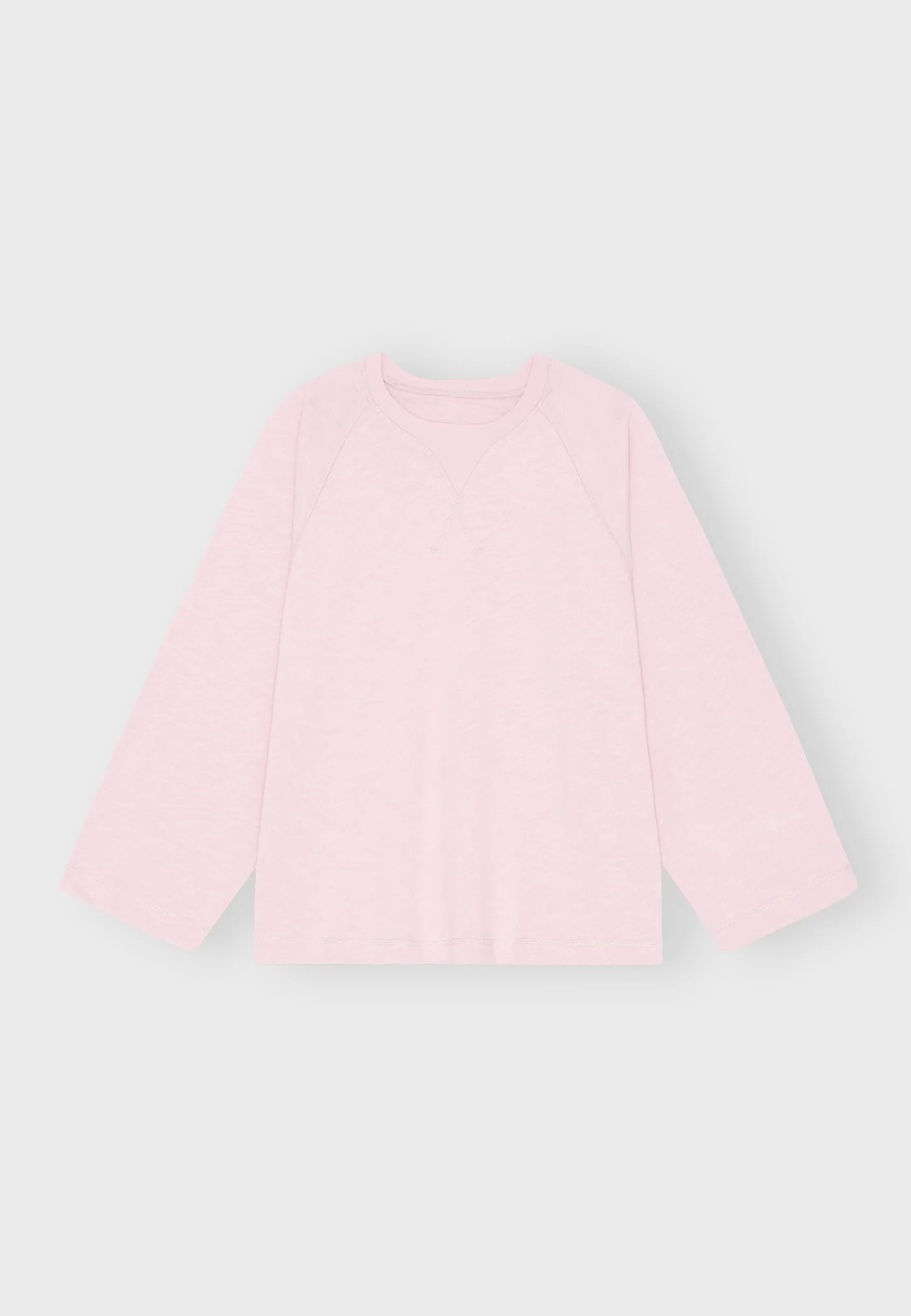 Lyserød sweatshirt i en let oversized pasform med rund hals, diskret mønstret vævning og dekorative syninger.