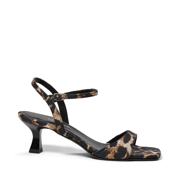 PAhelma sandalen med lille hæl i Leo satin er et elegant og feminint valg til både hverdag og fest. Det eksklusive leo-print i blød satin tilfører et sofistikeret og moderne udtryk, mens den lave hæl sikrer komfort hele dagen. Med sit stilrene design og fine detaljer er sandalen nem at style – perfekt til alt fra sommerkjoler til mere festlige looks.