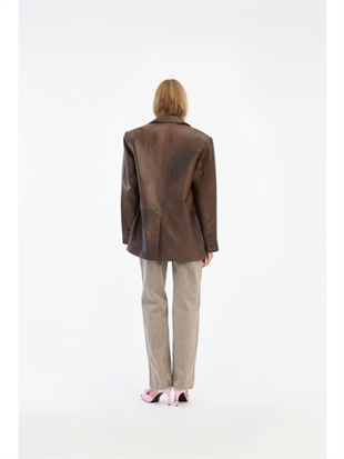 Rotate - Leather oversized blazer Potting soil